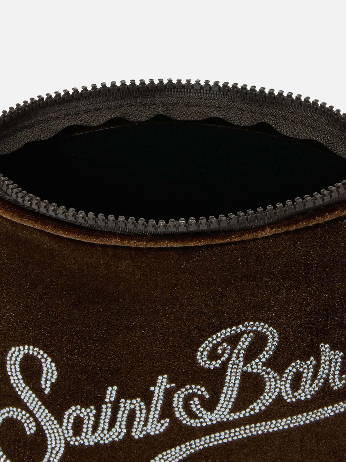 Calda e luminosa: velluto cammello e strass per un tocco sofisticato.