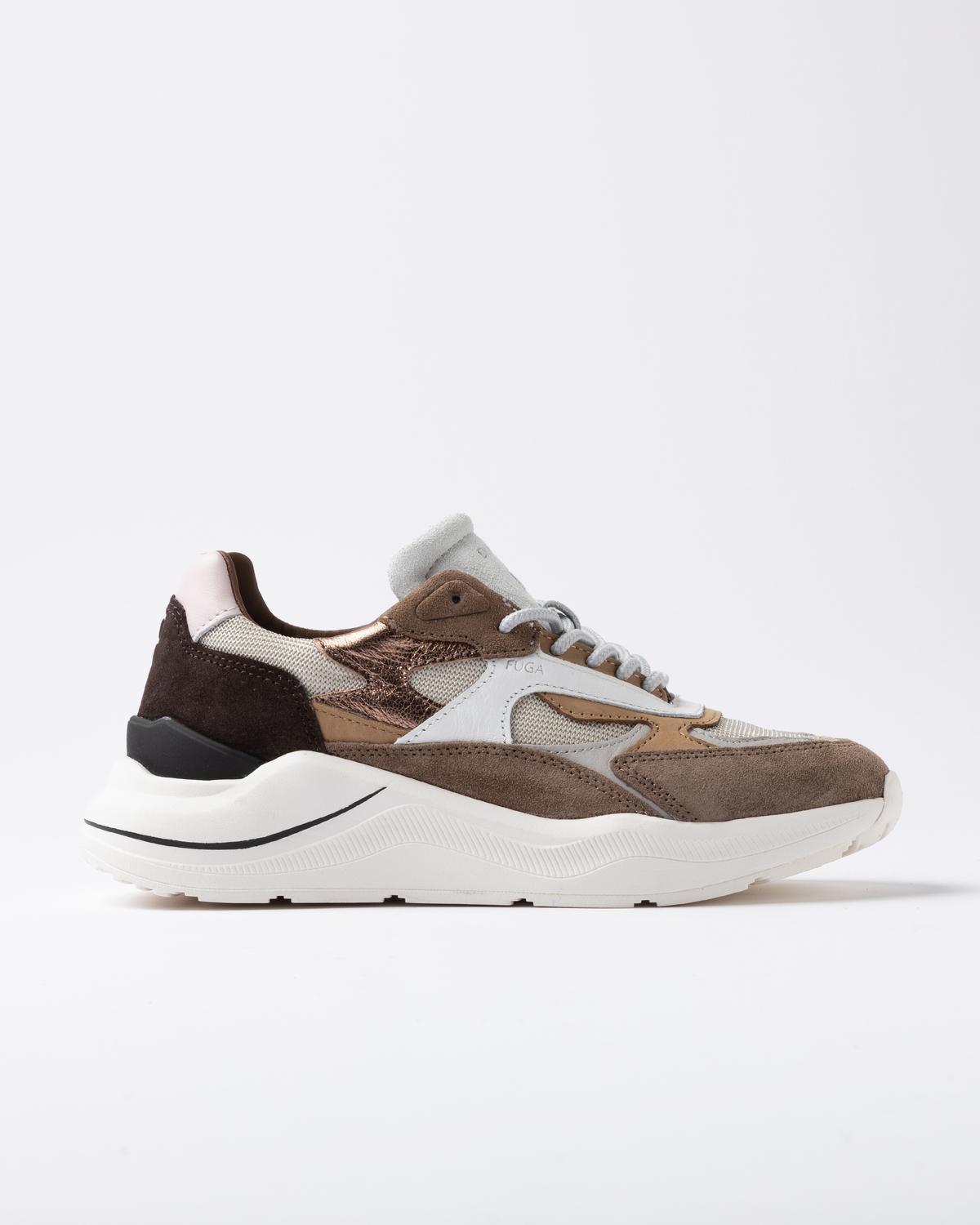Running sneakers in tessuto tecnico avorio e suede marrone