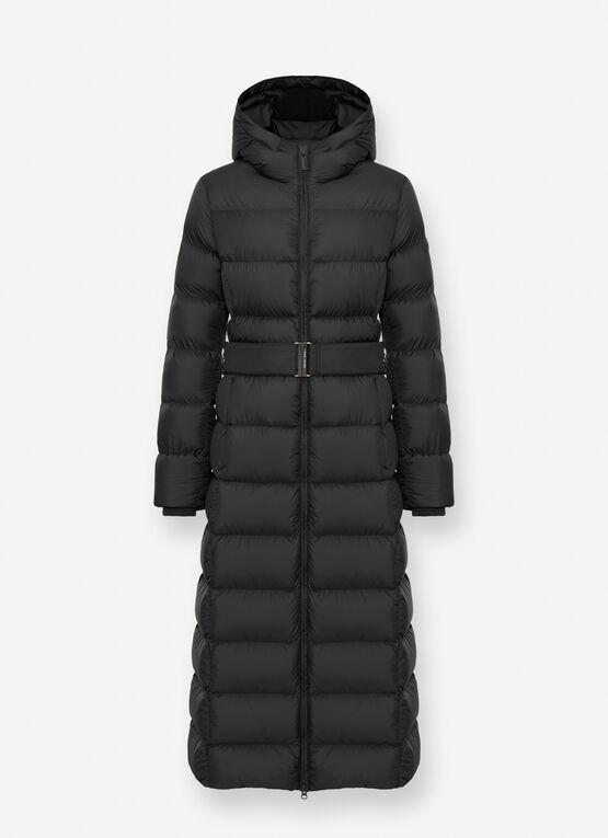 Espressione dello spirito femminile della collezione, questo piumino da donna unisce eleganza e funzionalità. La lunghezza e la cintura con fibbia in metallo valorizzano la vita, mentre i materiali caldi garantiscono comfort. Le tasche laterali e i polsini in maglia completano il design.