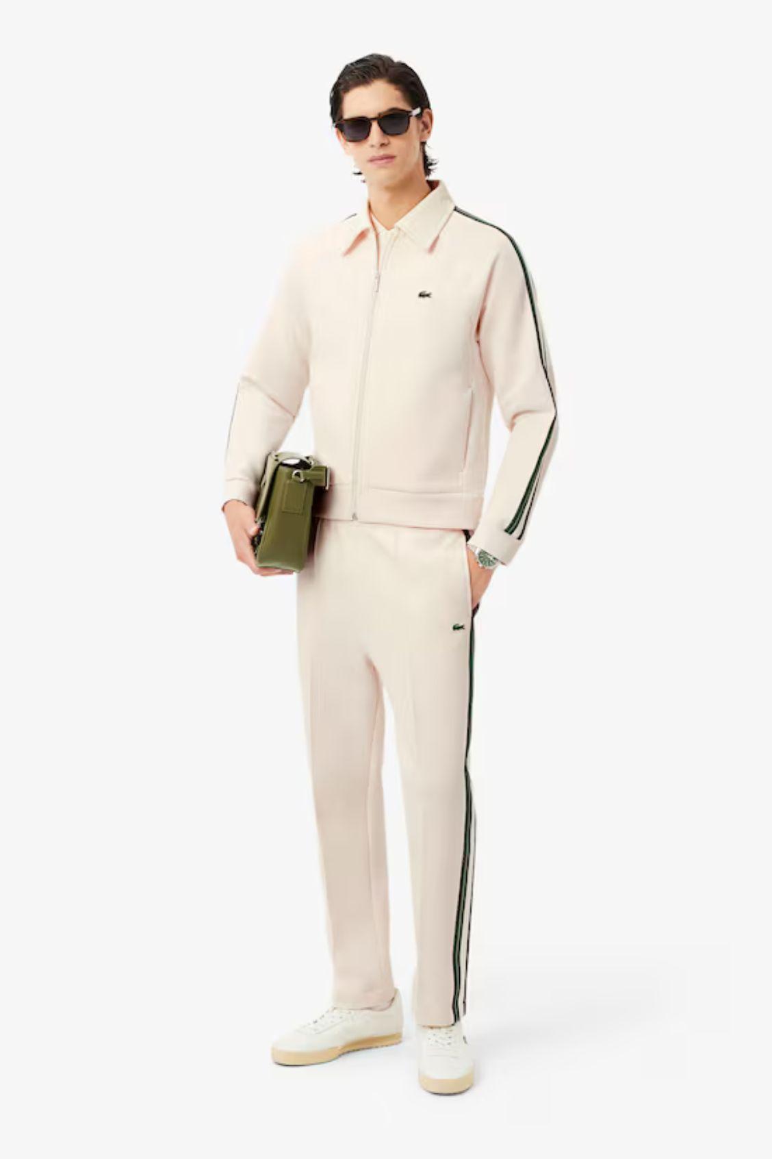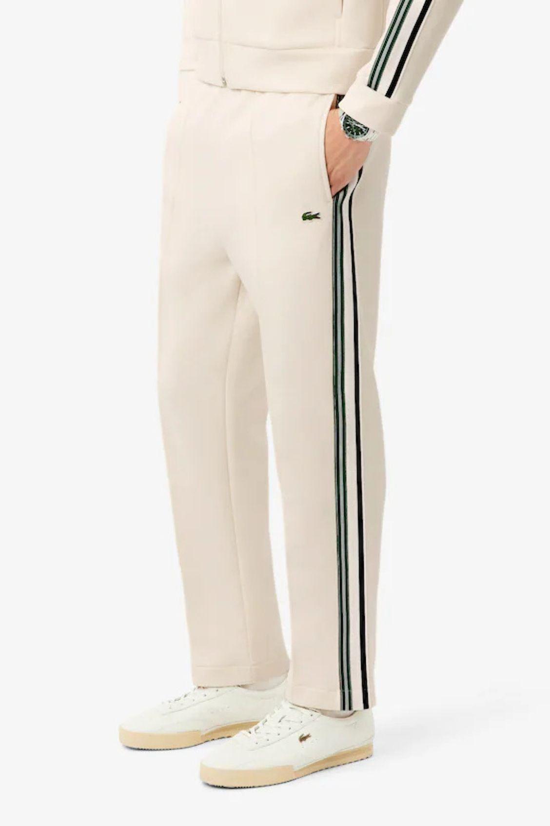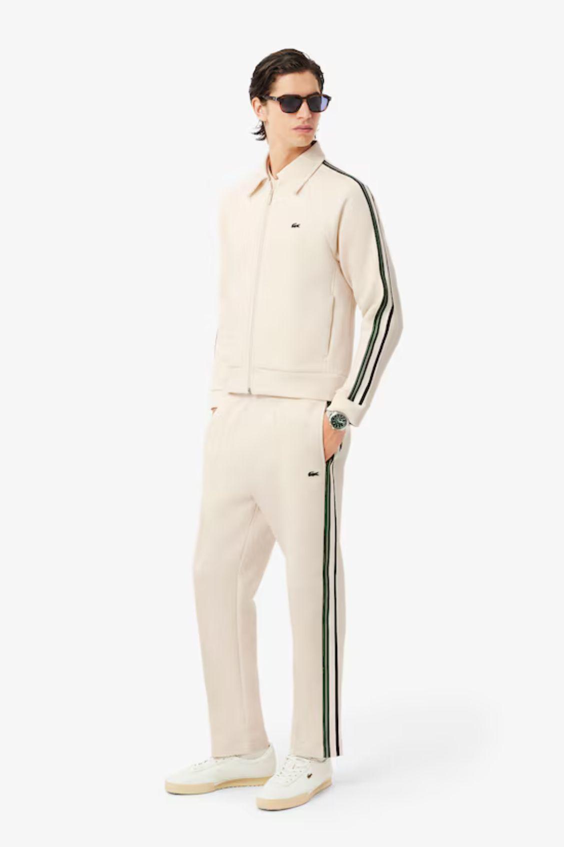 La moda incontra lo sportswear in questi pantaloni felpati, frutto di 90 anni di esperienza nella moda Lacoste e nello sportswear. Made in France in confortevole jersey double face, con sofisticati dettagli di finitura come le pieghe cucite e i pannelli testurizzatati a righe a contrasto. Uno stile sofisticato, rifinito con il tradizionale coccodrillo ricamato.