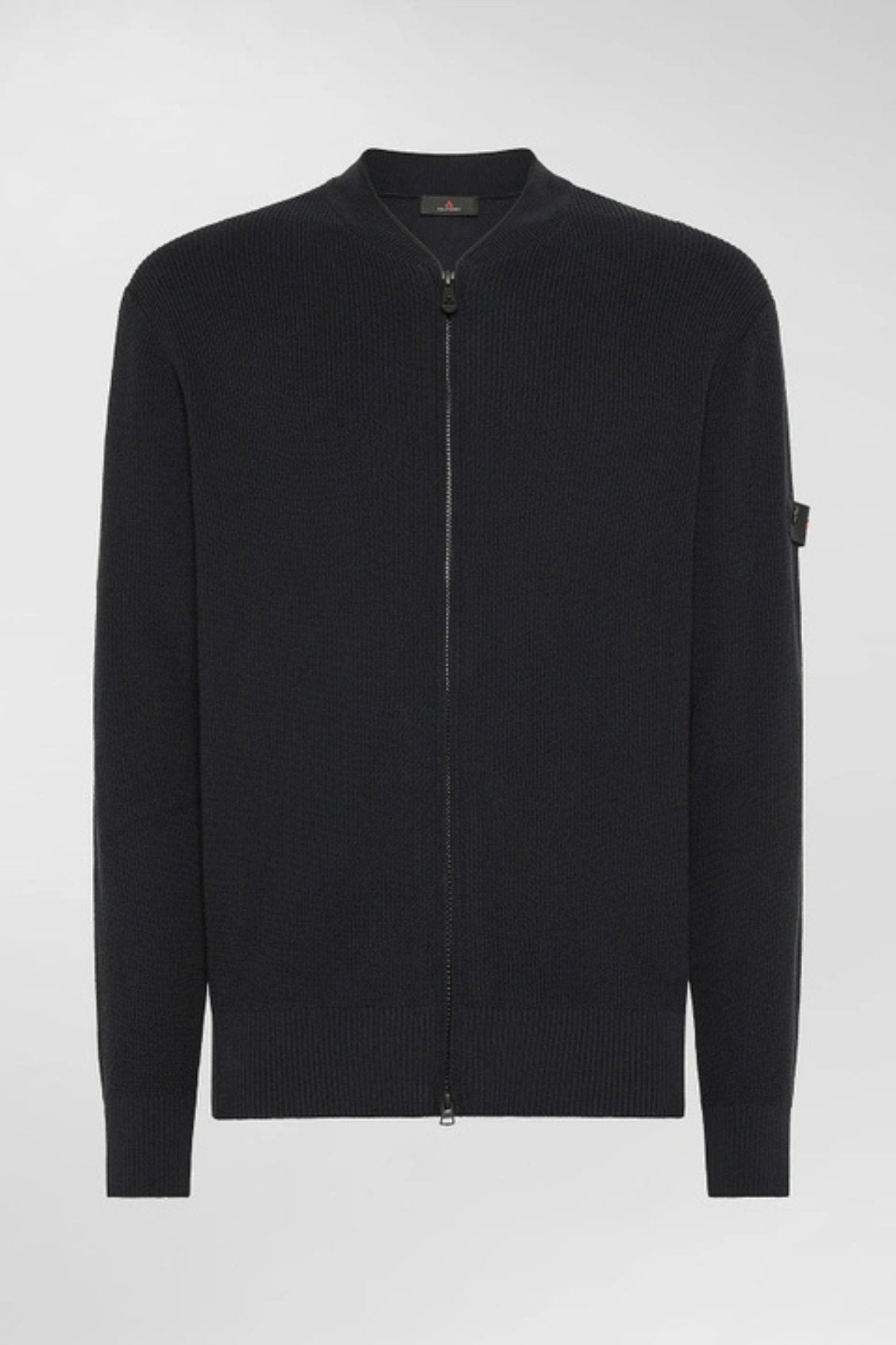 Maglia in tricot di cotone con lavorazione a costa inglese, che dona una texture tridimensionale e un aspetto materico sofisticato. Il colletto in piedi, la chiusura con zip centrale a doppio cursore e i dettagli a coste su collo, polsini e fondoc completano un design pulito e contemporaneo. Il logo Peuterey trilogy, elemento iconico del brand, è applicato con discrezione sulla manica sinistra con due bottoncini. Un capo versatile, perfetto per aggiungere un tocco dinamico e raffinato ai look cittadini.