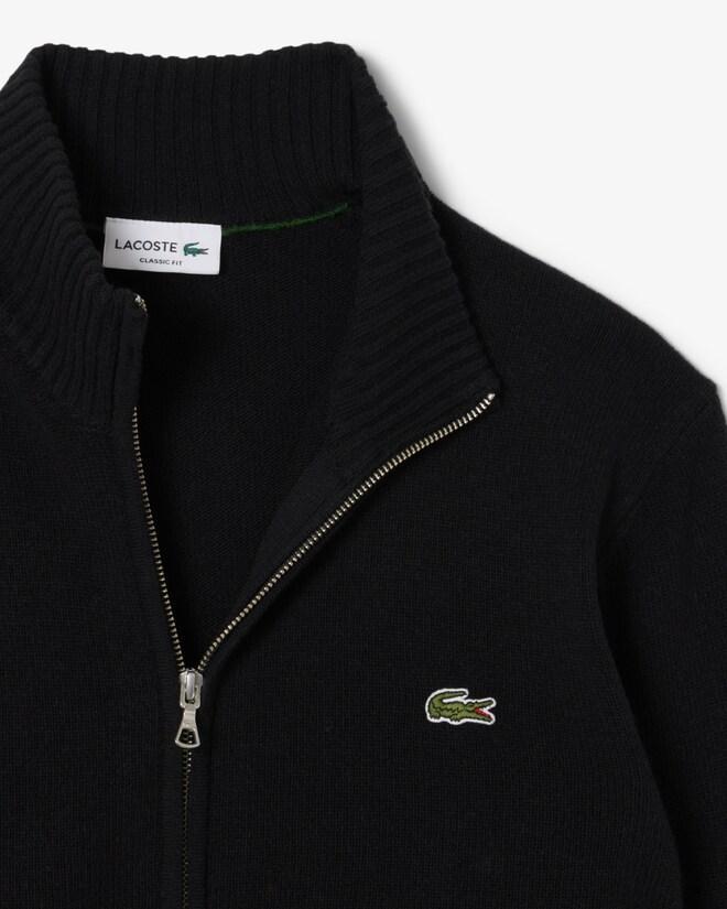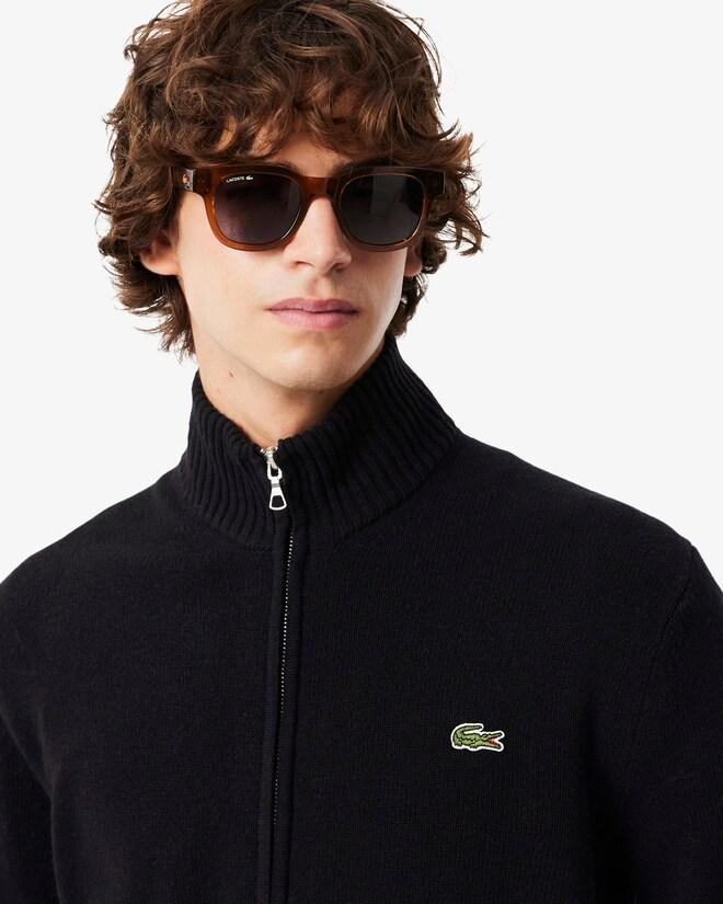 Questo maglione con zip è un capo essenziale del guardaroba Lacoste, che esprime l'eleganza e la competenza nella maglieria del nostro marchio. Realizzato in caldo e morbido jersey di lana cardata, con linee eleganti e un caratteristico coccodrillo ricamato per un tocco chic senza tempo. Un must con bordi a coste.