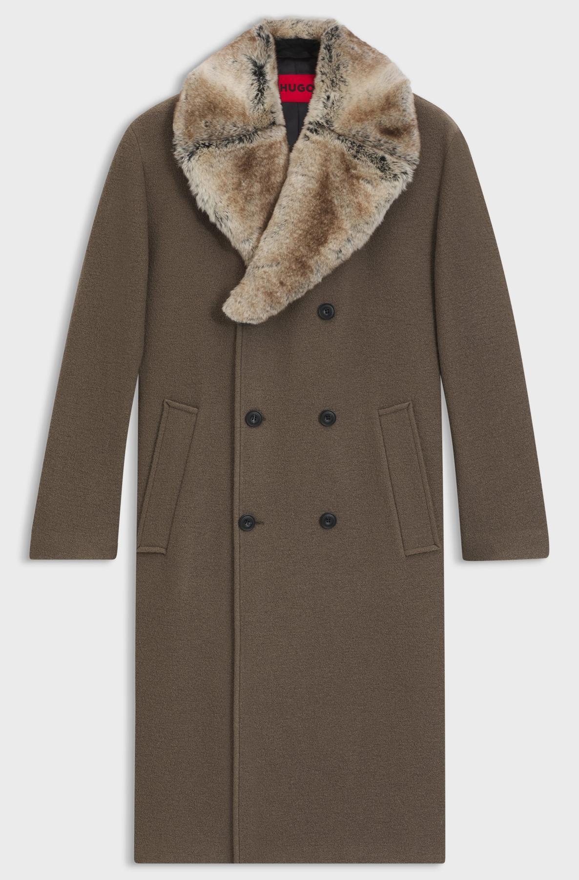 Indossato sopra capi sartoriali e look da sera, questo cappotto regular fit a doppiopetto HUGO Uomo è una dichiarazione di stile moderna. Colletto rimovibile in pelliccia sintetica. Calda lana cotta.